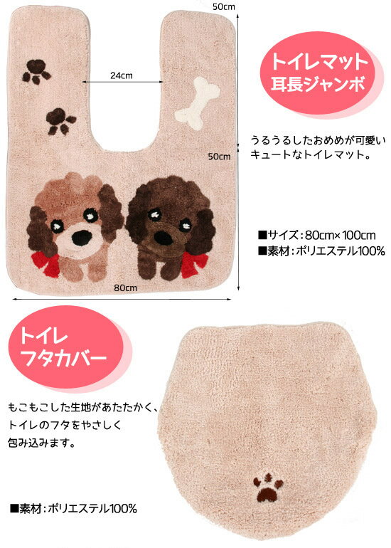 【トイレマット耳長ジャンボ】 ・うるうるしたおめめがかわいい、プードルのトイレマットシリーズです。