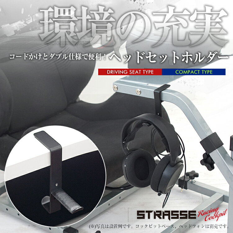 本体サイズ (約)横11cm×高さ9.2〜14cm、幅1.8cm 対応ベースフレーム ・STRASSEレーシングコックピットベースRCZ01[シート付きタイプ] ・STRASSEレーシングコックピットベースRCZ02[フルバケットシート付きタイプ] ・STRASSEレーシングコックピットベースXZERO[コンパクトタイプ] セット内容 ・ヘッドセットホルダー ×1 ・ボルト、ワッシャー、六角レンチ ※こちらの商品は、お客様ご自身で組み立て・設置が必要となる商品です。