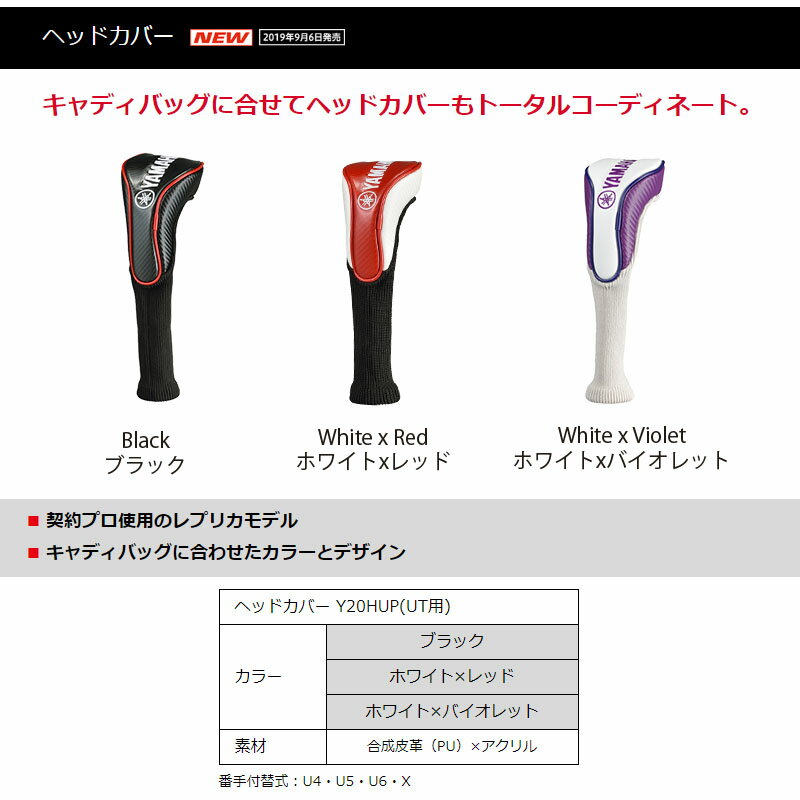 ヤマハゴルフ 2020年モデル ユーティリティ用 ヘッドカバー Y20FUP カラー : ブラック / ホワイト×レッド / ホワイト×バイオレット 素 材 : 合成皮革(PU)×アクリル Yamaha Golf Head cover for Hybrid, Utility Black / White x Red / White x Violet 黒 白 赤 紫 UT HB Japan TOKYO golf clubs shop. machino golf yasan.・契約プロ使用のレプリカモデル ・キャディバッグに合わせたカラーとデザイン ヤマハ リミックス ユーティリティ用 ヘッドカバー Y20HUP 2020年モデル ◆在庫につきまして◆ こちらの商品はお取り寄せになる場合がございます。